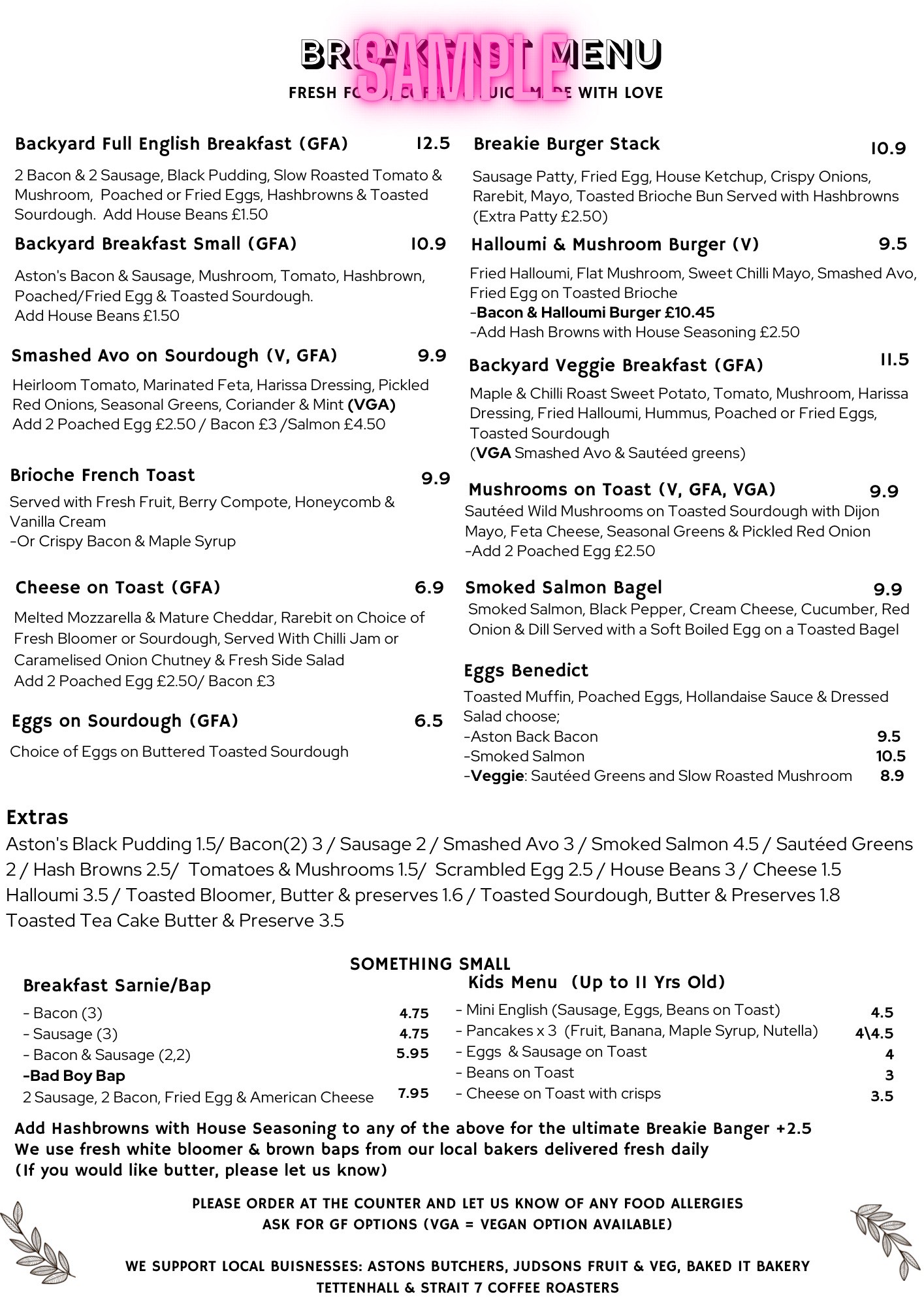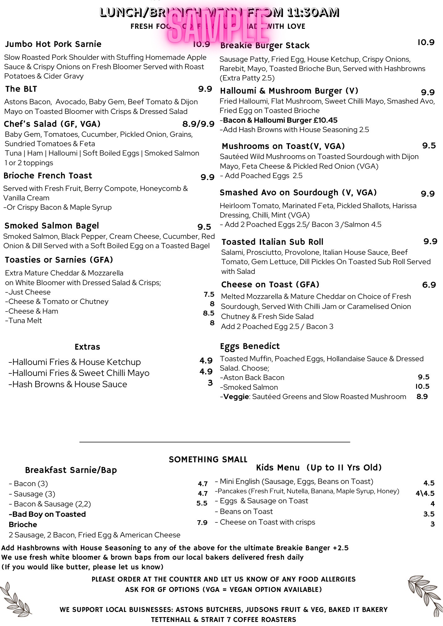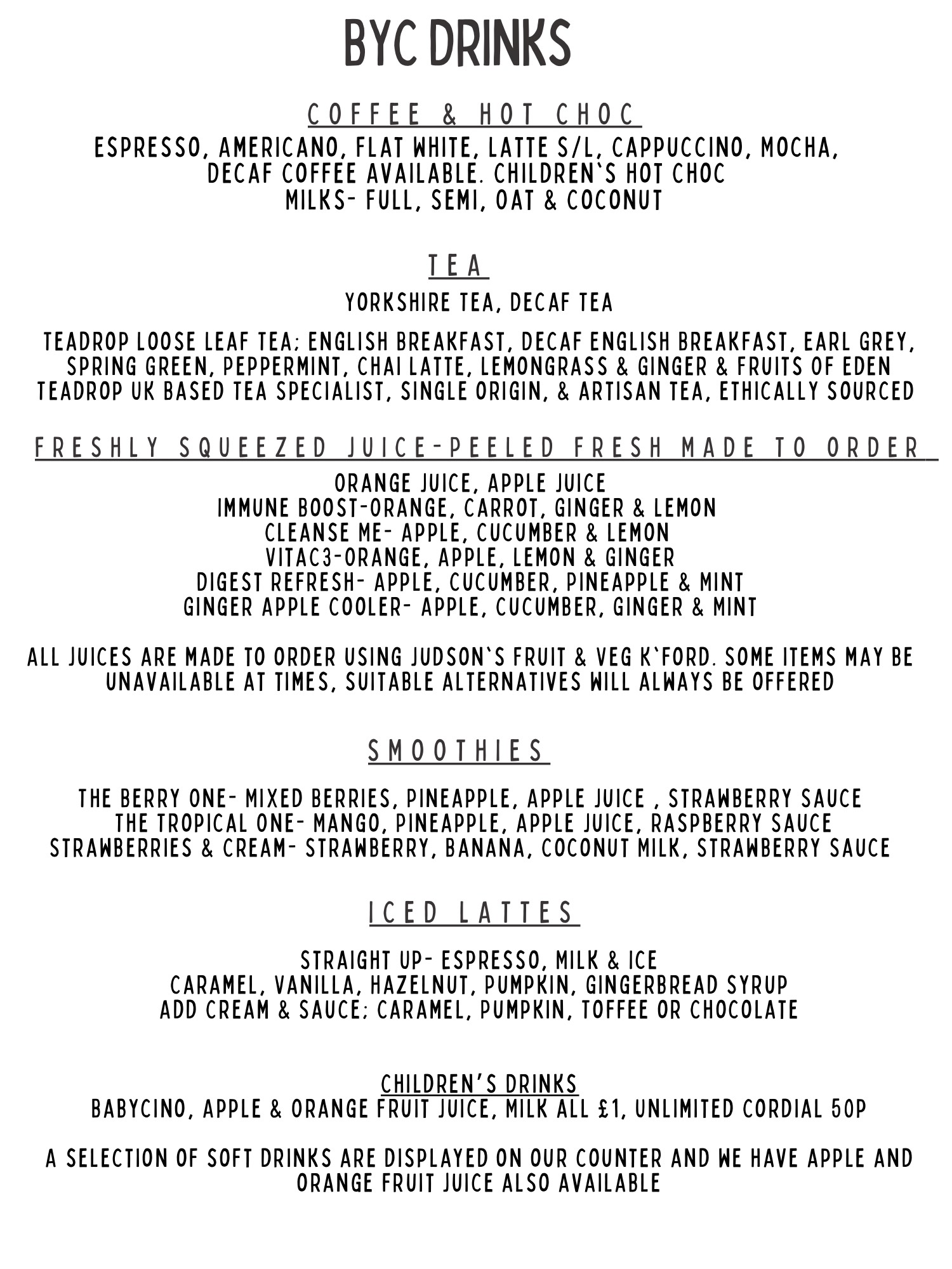 Explore our menu's created by our imaginative chef, with cakes and bakes from our local suppliers.